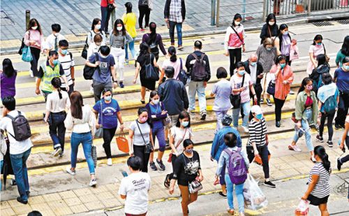 ●香港疫情昨日再现升势,新增的18宗确诊个案中,6宗感染源头未明。图为中环街头。 中新社