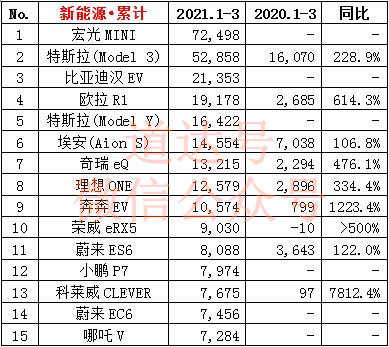 刚好,我今天看了一个数据,乘联会公布的今年3月份及今年前3个月新能源汽车销量排名。今年前3个月排名前十的新能源汽车车型中,特斯拉(Model3)位居第二,特斯拉(Model Y)排名第五,而其他几款车型,全是国产品牌。