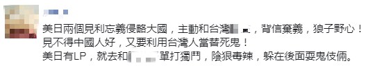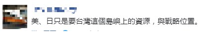 此外,还有网友嗅出了各种阴谋,称“美、日只是要台湾这个岛屿上的资源,与战略位置。”