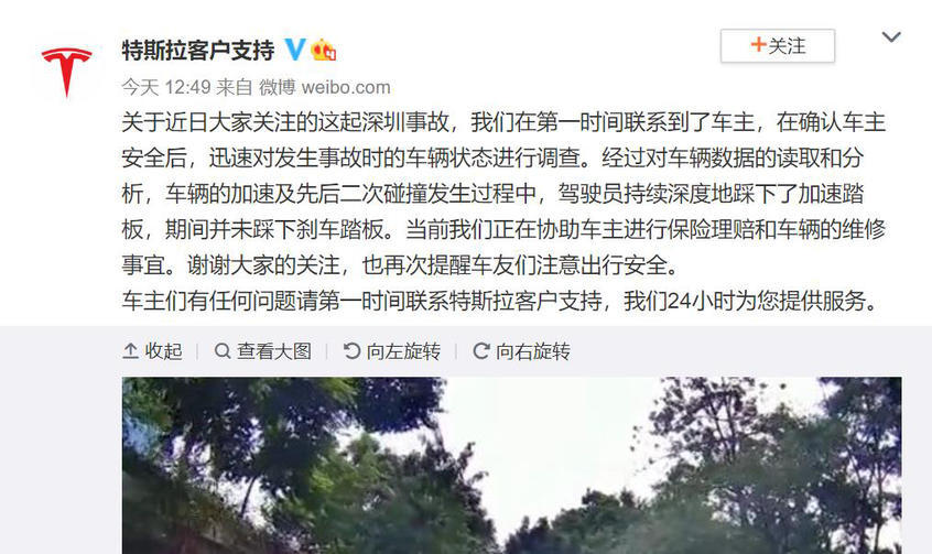 2020年12月,深圳一辆正常行驶的特斯拉突然加速追尾一辆出租车,并再次加速撞上一辆货车后被阻停。车主称,刹车失灵的同时方向盘也无法操控。特斯拉则回应称,车辆的加速及先后二次碰撞发生过程中,驾驶员持续深度地踩下了加速踏板,期间并未踩下刹车踏板。