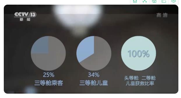 一份调查报告显示,泰坦尼克号头等舱乘客获救的比率为62%,二等舱乘客获救的比率为41%,两个仓位的儿童获救比率为100%。相比之下,三等舱乘客的获救比率只有25%,儿童的获救比率为34%。