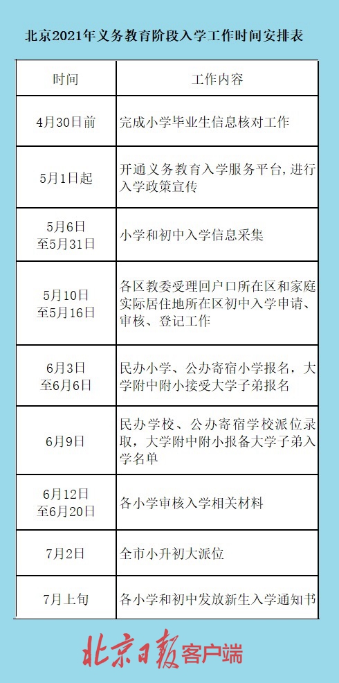 (原标题:时间表公布!北京2021年义务教育阶段入学各项工作这样安排)