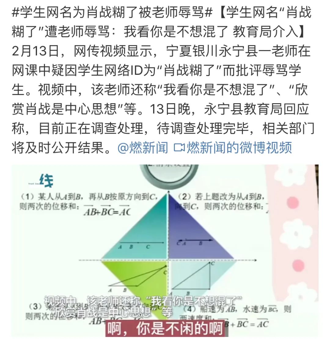 事件回顾:2月25日,有网友爆料天津咸水沽第二中学班主任肖某某在训话中歧视学生,称往届学生家长不是高官就是富商,这届学生都是平民百姓,“别怪我瞧不起你,我告诉你,某同学的妈妈一年挣的钱都比你妈妈50年挣得多。你们素质是一样的吗?你们能一样吗?你反思一下你们的家长有多少素质?......”