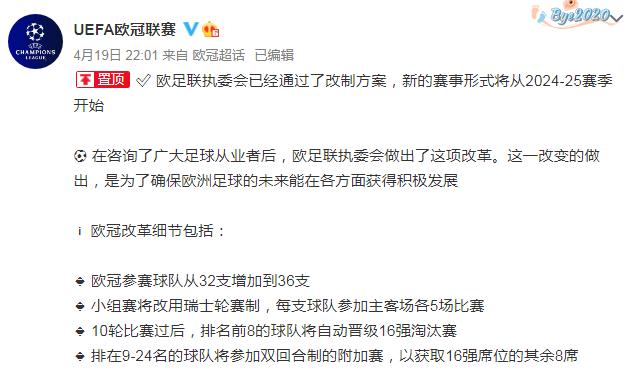 北京时间19日晚,欧足联按计划宣布欧冠改制。
