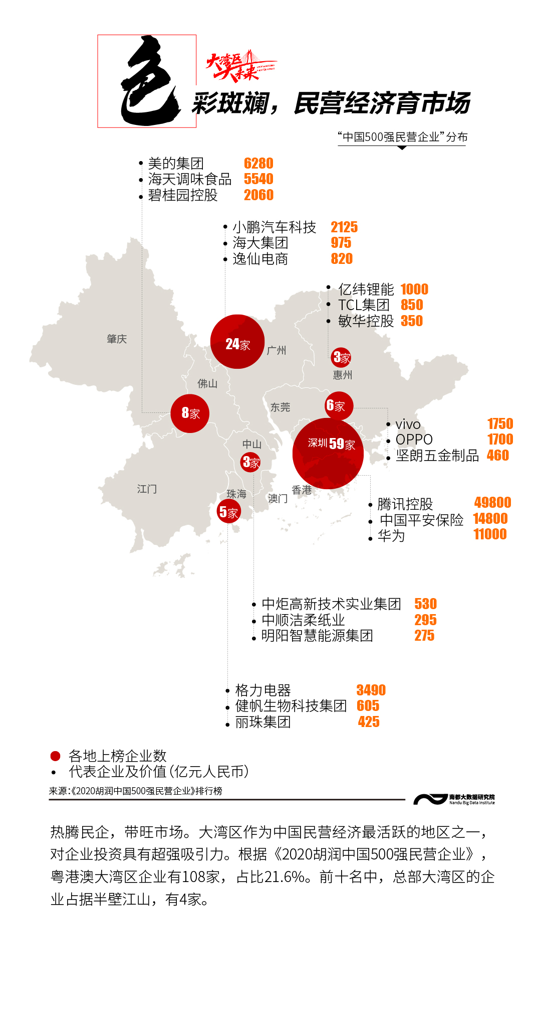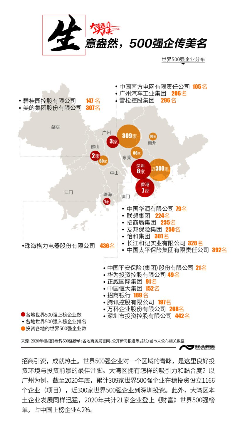 http://www.sznews.com/news/content/2021-04/20/content_24147001.htmhttp://www.sznews.com/news/content/mb/2021-04/20/content_24147001.htm南方都市报APP ? 南都指数粤港澳大湾区,这个“充满活力的世界级城市群”,产业体系完备,经济互补性强,区域竞争力强大,拥有651家A股上市公司、108家中国500强民企、306位《2021胡润全球富豪榜》上榜富豪……南都大数据研究院梳理大湾区城市8组数据,多角度呈现粤港澳大湾区的“风华正茂”“活色生香”。1/enpproperty-->