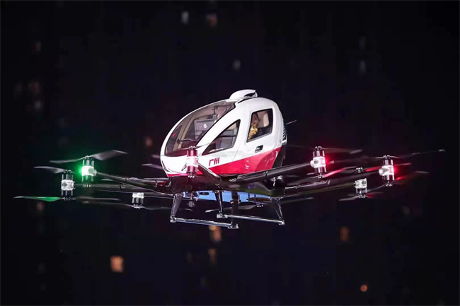 开幕式上,一架载人级自动驾驶飞行器在中国电信物联网网络支持下出现在夜空,在所有人的目光中,它载着火神杯稳稳地降落在天河体育场,此举全球首例。这是广州创新研发的全球首款载人级自动驾驶飞行器,深厚科技质感,赋能文化产业,致力于让每个人都能享受到安全、智能、环保的空中交通,让创新智能科技再次改变人类的生活。