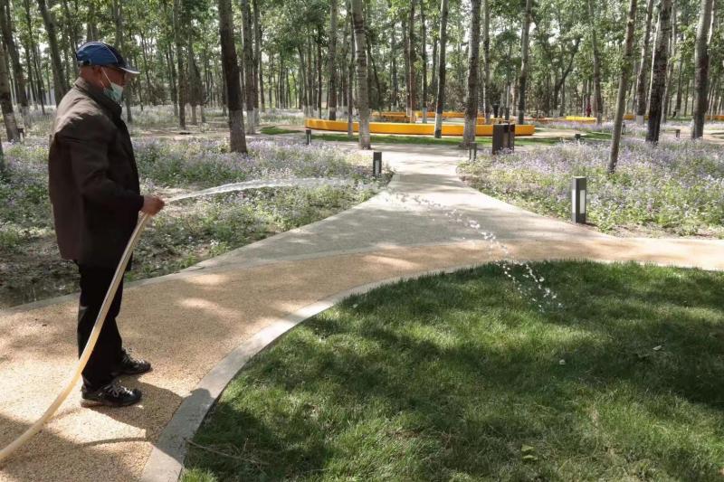 丽都文投环路全长1.5公里,连接将台路与坝河滨水景观带。贯穿丽都片区背后沿机场高速约6万平米的防护林带内,在喧嚣都市里一片安宁之地中,展现悠然、烂漫、和谐、活力的城市画卷,漫步其中,甚至很难想象,这是在东四环。丽都文投环路2020年9月开始动工,到11月底完成基本建设。在不改变文投环路原有的树木和生态基础上,增加植被层次和种类,丰富植物和动物多样性,同时还融入人性化和多元化的改造元素,为居民打通了3公里长的片区休闲漫步观赏绿廊,利用林下空间增设漫步道、环形长椅等,提升休闲娱乐的舒适度;此外,步道和自行车道全部采用100%透水材料,降低干扰。形成一个居民健身、企业散步、儿童玩耍、观景的6万平方米的城市森林公园。
