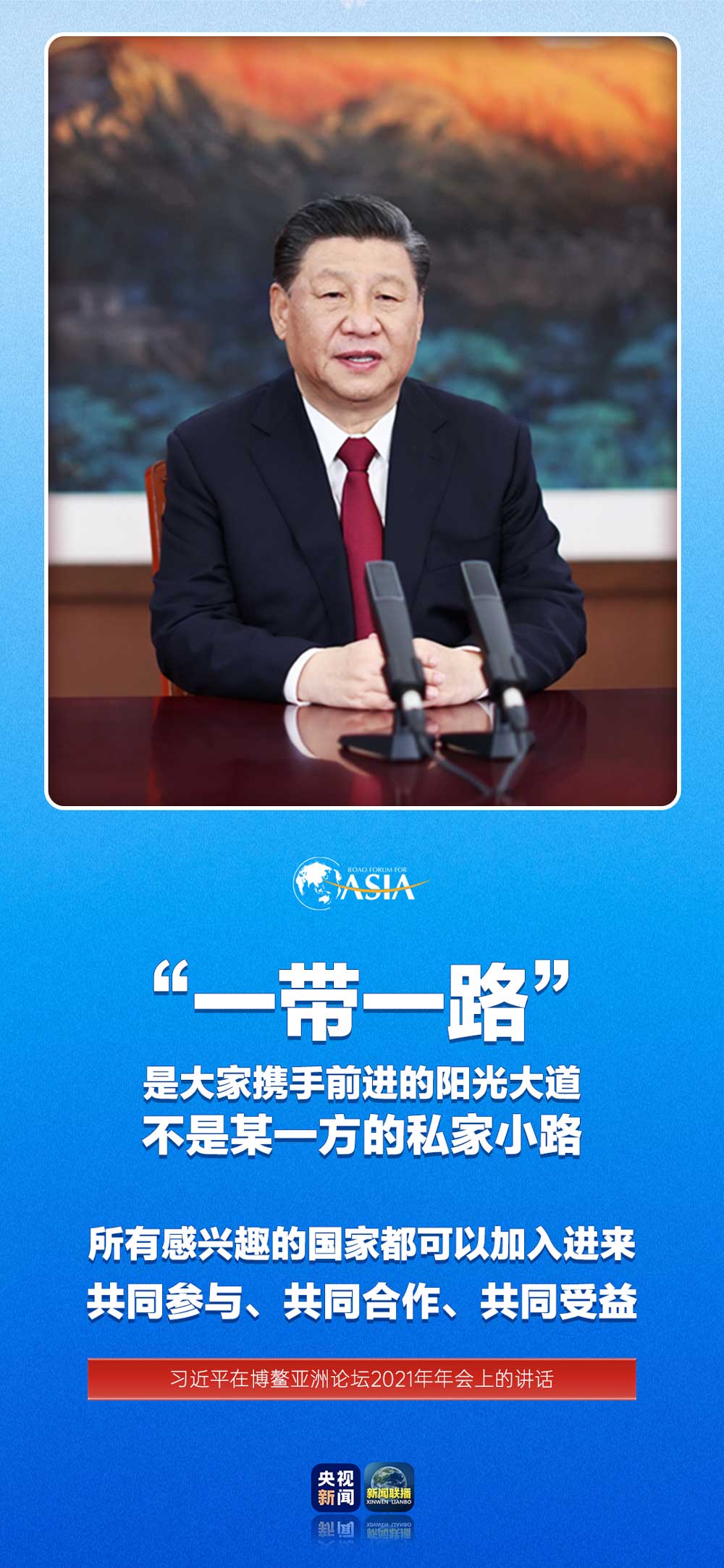 2021年4月20日,习近平主席在博鳌亚洲论坛2021年年会开幕式上通过视频发表主旨演讲,合作、开放等高频词贯穿演讲全篇。