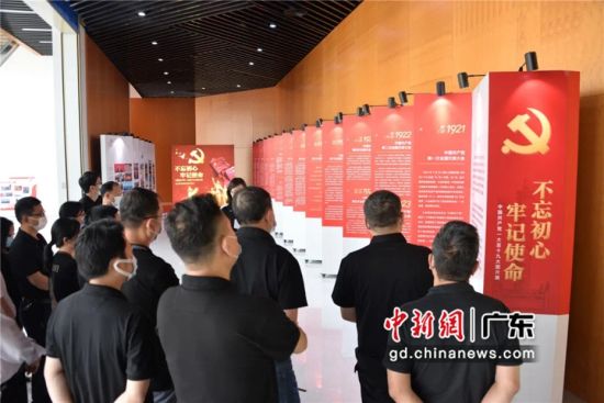 珠江钢琴集团党委宣传部部长华静带领大家一起学习展览的珍贵文献和丰富资料,回顾一大至十九大期间重要的历史事件和现场聆听极具时代印记的音乐作品,从中感悟中国共产党百年来的艰苦奋斗历程和不同时期红歌创作的背景故事。