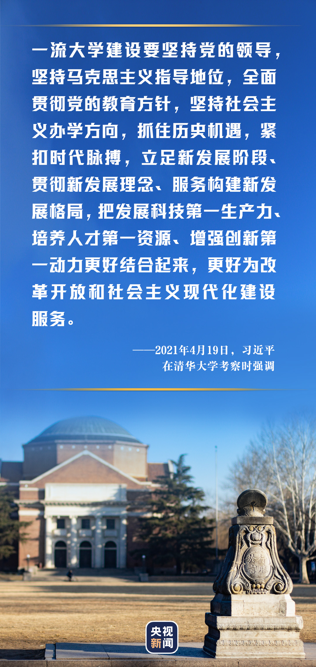 参观美术学院校庆特别展、看望正在训练中的校篮球运动员、考察成像与智能技术实验室和重点教学科研成果展示、同师生代表亲切座谈,清华 “学长”习近平为母校110周年校庆送上祝福,也为我国高等教育发展勾画蓝图。