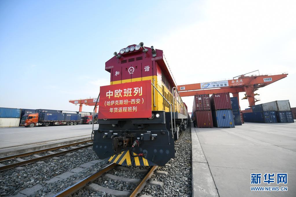 2月3日,满载年货的中欧班列抵达中国铁路西安局集团有限公司新筑车站。新华社记者 李一博 摄
