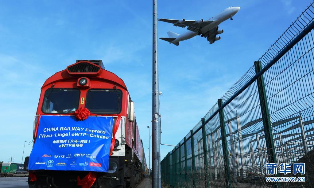 2019年10月25日,满载着82个标准箱的中欧班列(义乌—列日)“世界电子贸易平台(eWTP)菜鸟号”首趟列车抵达比利时列日物流多式联运货运场站。新华社记者 潘革平 摄