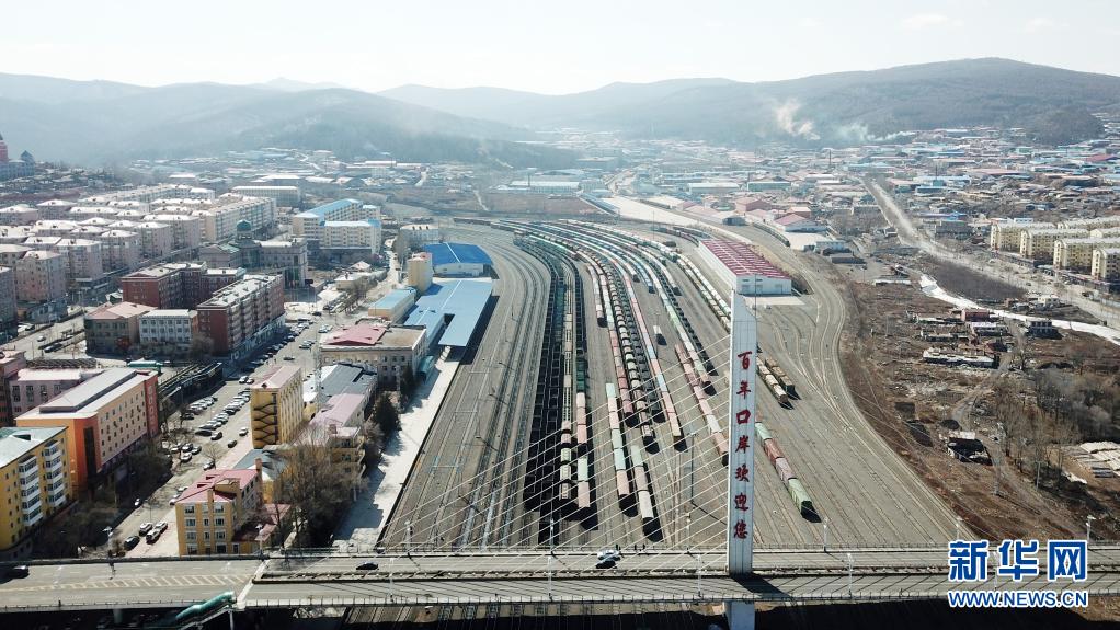 这是3月31日拍摄的绥芬河站南场,中欧班列从这里出入境(无人机照片)。新华社记者 王建威 摄