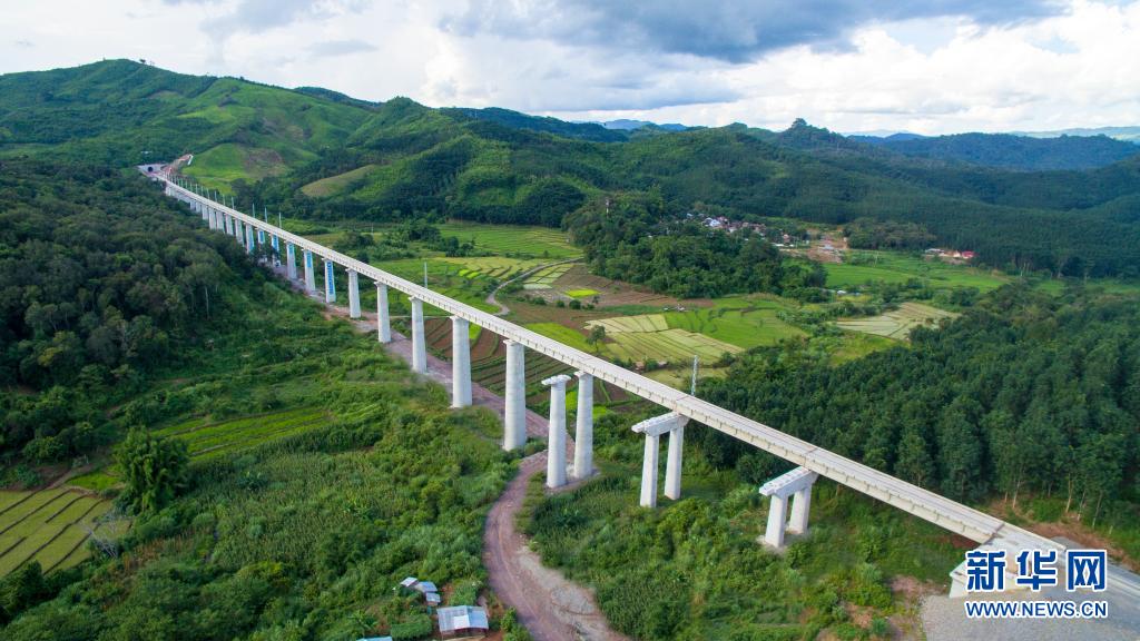 这是2020年7月29日在老挝北部拍摄的建设中的中老铁路。新华社发(潘龙柱摄)