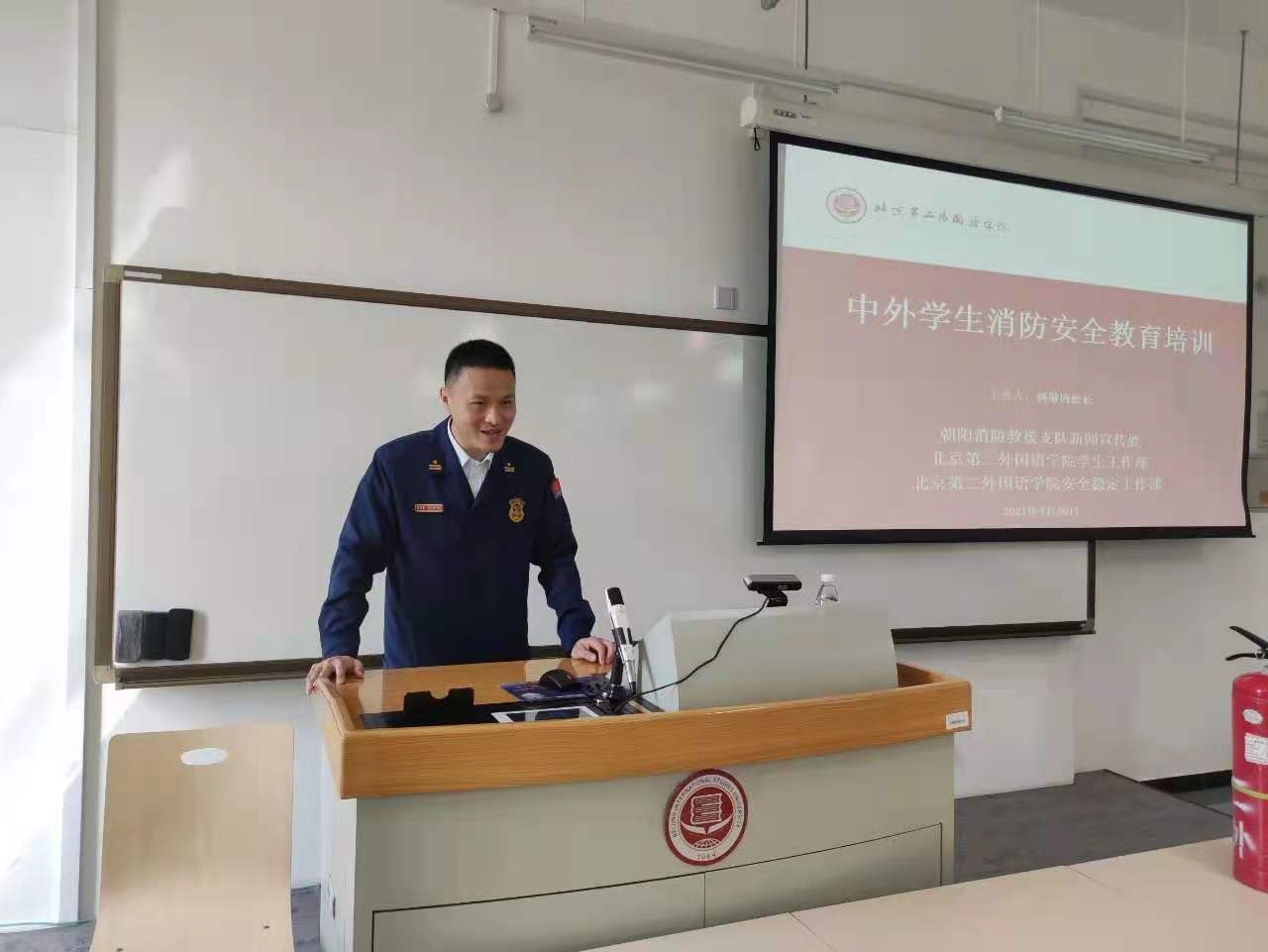 为持续拓宽辖区消防安全宣传覆盖面,在已经建立的“全国首支外国人消防安全宣传队”的基础上,不断发展壮大“消防安全宣传志愿者”队伍,4月20日下午,北京朝阳区消防救援支队宣传员来到北京第二外国语学院,对来华留学生开展消防安全理论授课和基本技能实操实训,共有来自哥斯达黎加、厄瓜多尔、俄罗斯、土耳其、古巴、津巴布韦、韩国等22个国家的58名留学生参加了上述活动。
