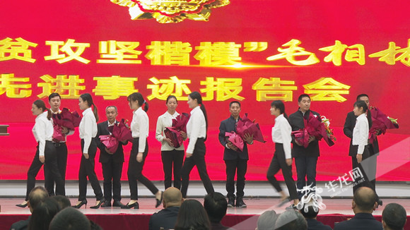 报告会上,毛相林、巫峡镇干部方四财、竹贤乡中心小学下庄村教学点教师张泽燕、竹贤乡下庄村村民彭仁松、竹贤乡下庄村驻村干部陈天艳、重庆日报记者颜安6位报告人,通过自己的亲身经历,讲述了毛相林带领乡亲们不忘初心使命,用最原始的方式在悬崖峭壁上凿石修道,历时7年铺就一条8公里的“绝壁天路”,以及他带领村民发展乡村旅游,让乡亲们脱贫致富的平凡壮举。报告会期间,有雷鸣般的掌声,也有悄无声息的泪水。