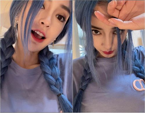 只见Baby将整头长发染成高彩度的灰蓝色,编成了两股辫,搭配红唇妆,更凸显她的立体五官与白皙嫩肤,此外,Baby还罕见地换上黑色大U领低胸紧身洋装,身形纤细得超乎常理,胸口双球近乎溢出,身材看起来超有料,让人为之惊艳。