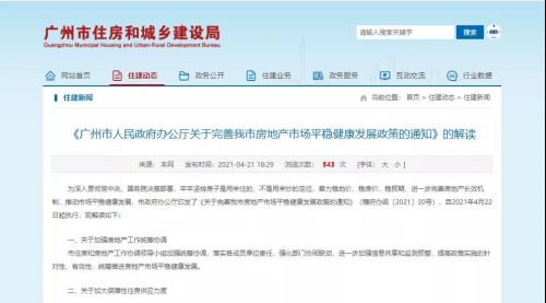 随后,广州市住房和城乡建设局官网发出了对该《通知》的解读。