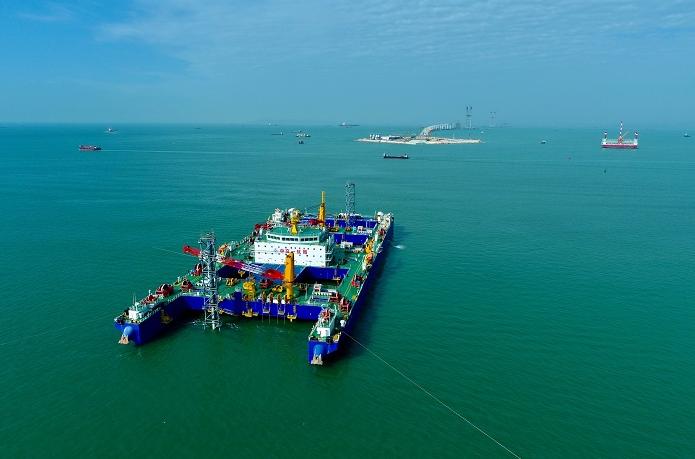 4月20日至21日,沉管浮运安装一体船提带E9管节,经7次航道转换,安全抵达E9基床上方,实施沉放。受深水深槽影响,建设团队不断优化一体船缆系设计,加强动态监测,保证对接顺利进行。