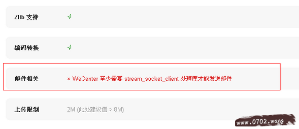 WeCenter至少需要stream_socket_client处理库才能发送邮件