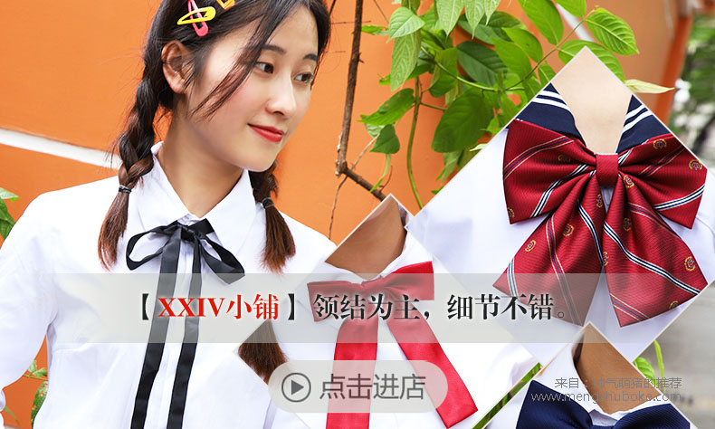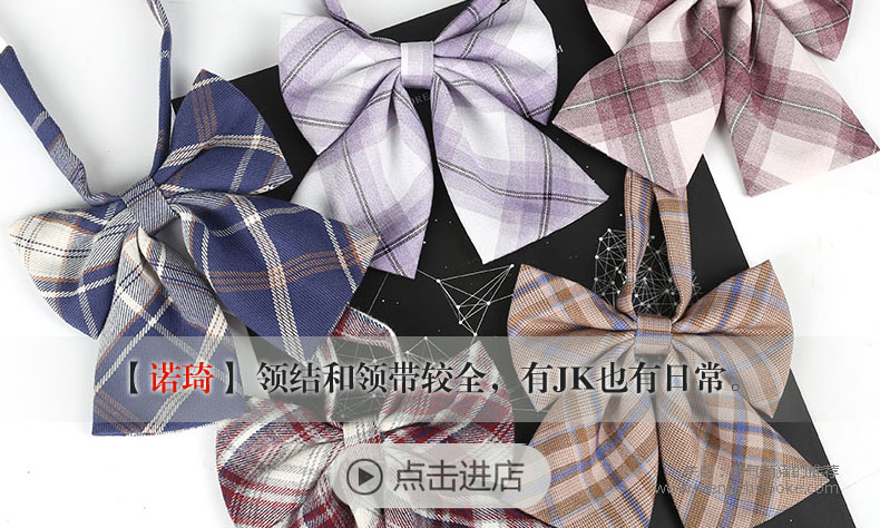 这家来自另一个朋友的介绍,相比前面几个不算太冷门,东西也蛮全的,领结、领带这些比较多,不仅仅jk入坑可用,有的款买来搭配其它小裙子也不错,反正是可爱的范。款式很少女小清新,可以看看他家的风格套装哦,一套入下来搭配出来相当地甜!