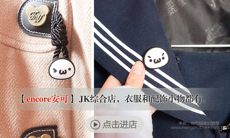 这个店应当是不用萌猪再多讲了吧!淘宝上的JK装第一热店,之前就推荐过他家的小裙子。其实店里还有相关的搭配专区,领带、领绳和徽章这些都有。如果你在他家入的衣服,其实比较推荐就在他家入周边的饰品,搭配出来会比较有效果。最近上新力度挺大的,看微博目测接下来会陆续上新更多春款,不过不多。而且现货款式太全了,不用等的。