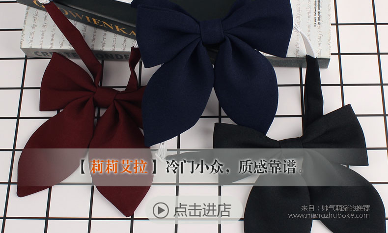 再来一个专注于领结和领带的店,都是这两种了,但有专门的“JK配饰专区”,在圈内他家的东西也是小有名气的。上面我分享的图上一条已经入了,风格特别好看,质量简直超出价格太多了,拉链丝丝顺畅。但是我纠结怎么配,我应该买酒红色的才好啊!