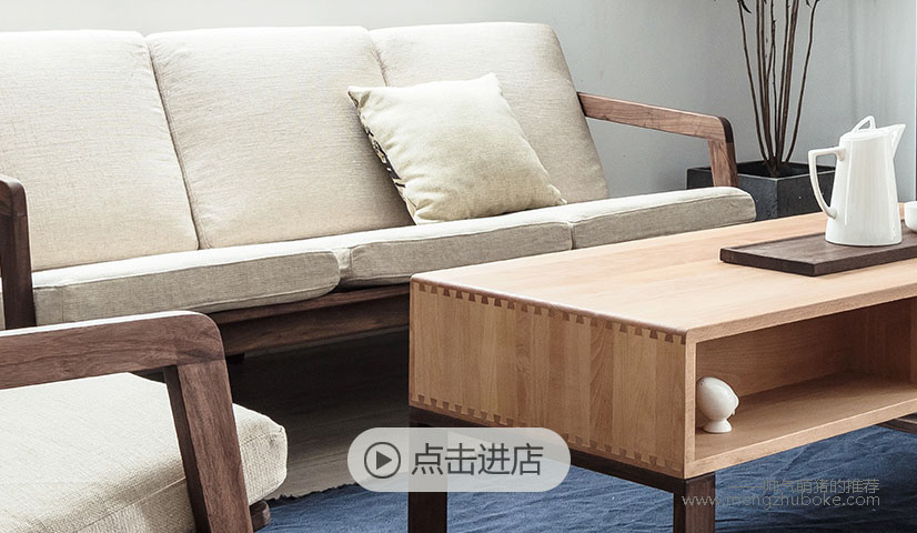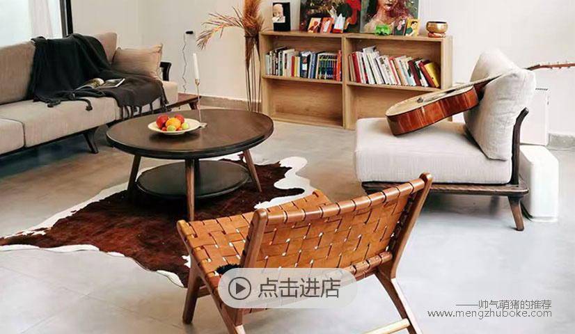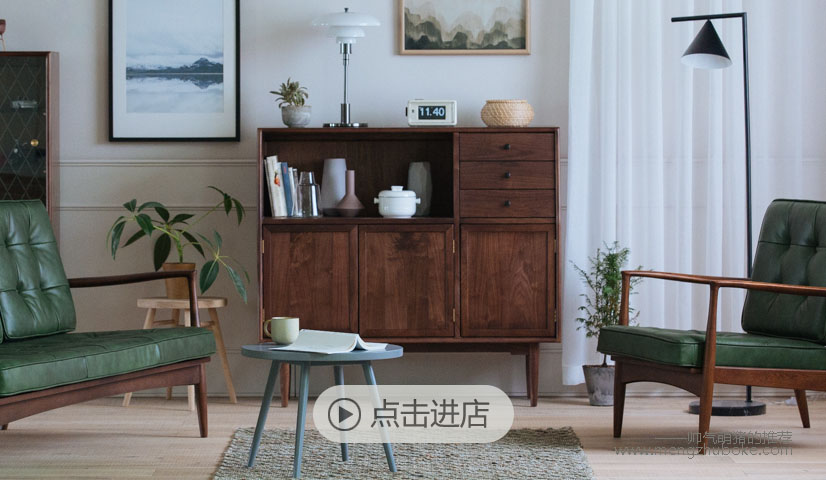 也是原创店一枚,风格就偏复古日式和新中式多一点,最喜欢是他的墨绿色皮质实木沙发,跟我在日本逛到的中古家具店里的很像,也很有年代感,而且用的是黑胡桃木,就更加高级了。朋友家还入了这个店的一款茶几,简简单单的设计,质感温润细腻,做工也精细。