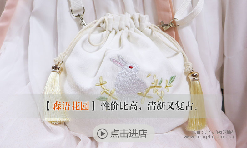 森语花园:性价比很高的一家店,这家的包包简直是仙女专用啊,上面的图案简直是太入心,清新又复古的元素让我的心都化了!好多款都是浅色又暖心的色调,简直就是满满的古风格调,而且有几个还可以和闺蜜组成闺蜜包,五金质量真的走心了,找仙女包必入的店。