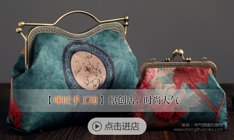 咪匠手工坊:也是一个平价原创店,他家的包包贵气又国风,都是原创设计的款,而且性价比又高。整体看他家的款会偏时尚大气一些,搭配那种明制大气款的汉服效果相当棒,复古风的小包包,搭配汉服真的是美赞了!或者用来搭配旗袍这些参加晚宴,拎着出街也相当显气质。