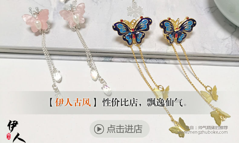 伊人古风手作:一家性价比挺高的手作古风饰品店,他家比较特别的是用各种珍珠制作的仿87版红楼的凤钗,摆在那里看似乎看不出美来,但是戴在头上真是有种飘逸的感觉,只是款式还不算多,真希望能多出点新款!
