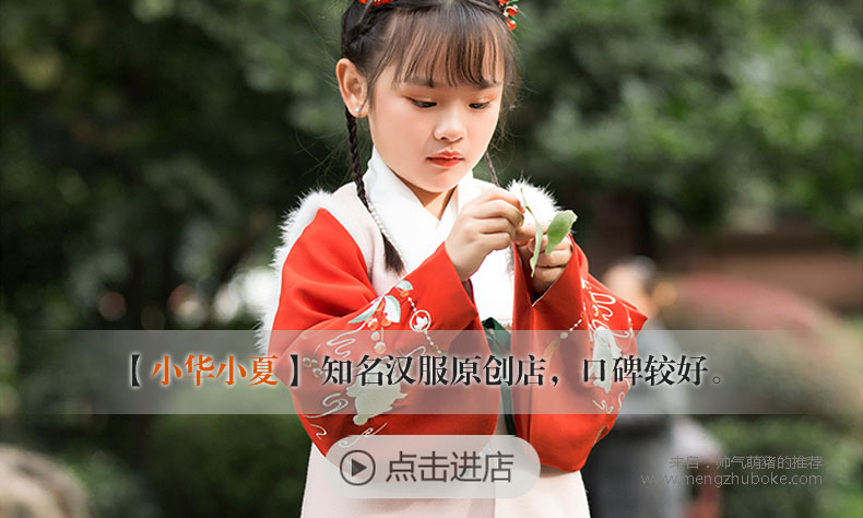 小华小夏:重回汉唐旗下店,也是一个较为知名的汉服品牌,之前萌猪介绍过他家的成人款,应当好多人都知道这个品牌。他家也有专门的儿童款专区,也是男女童的款都有,数量不算多,多为改良款,配色也是温柔的路线。入守他家的袄裙,真的很可爱,重点是价格比较实惠。