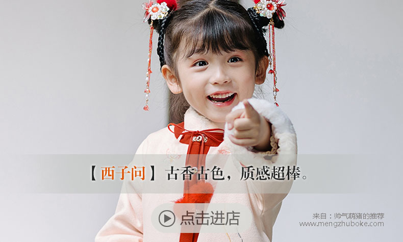 丸子小妹妹国风童装:这家主打改良汉服,做工和布料质量都很好,已经入了,宝宝试穿了一下自己臭美的不得了!另外她家的改良儿童款旗袍也要表扬一下的,真的很适合拍写真,细节做比较精致,经得起高清镜头的拍摄。而且她家小模特的造型、妆发都比较好借鉴。
