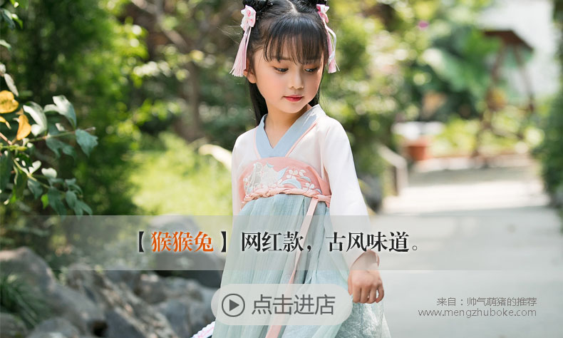 猴猴兔 古风童装:款不多,但他家有一件刺绣齐胸襦裙是网红款,太多妈妈在分享!他家除了几套网红款之外,还有几双汉服小鞋子和几把小扇子等配饰,也是拍照必备的。说回他家那套网红款,萌猪已经入了,收到就迫不及待的穿上了,质量不错而且好看,给俺的臭美妞美的不着地儿了,阳春三月正是穿的时候,微微拖地,很有古风味道,期待出好片!