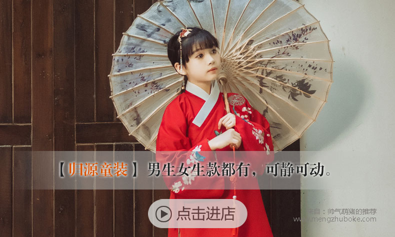 归源童装:先要表扬一下他家的几位小模特,小模特太好看了吧!简直是就骗人生孩子系列。男生款和女生款都是有的,正版的和改良的也都有分类,他家的汉服形制比较多,设计也很有特色,自有一种端庄感觉,可静可动,两种状态都美。同样他家的款也相当适合拍照 ,我已经入了一套准备送给闺蜜家小儿。