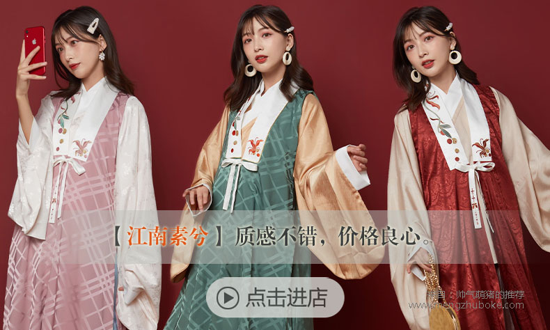 清水溪:老牌店一个,设计上也比较正版,汉服和汉元素的款都有。价格中等微上,她家的模特是真的好看,话说之前我和朋友买了好几件了质量都不错,拍出照片相当圈粉。