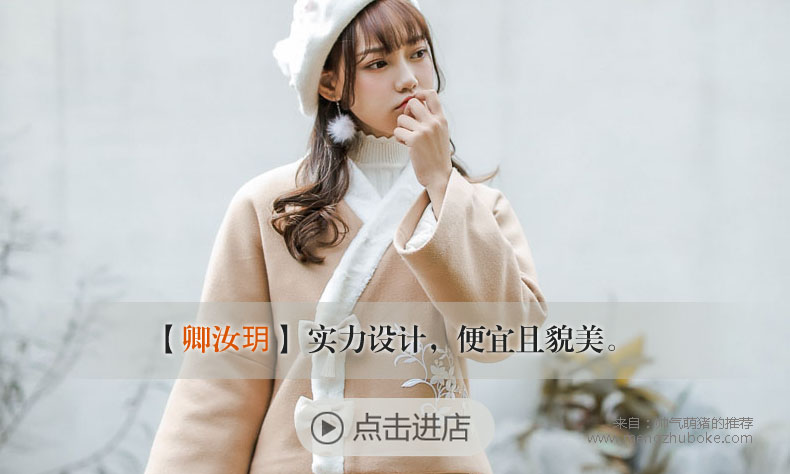 江南素兮:这家也比较平价,价位三到五百不等,衣服的细节做的不错,只是风格也比较单一一些,感觉可选余地不大,当然遇到心仪款的机率挺大的。推荐她家秋冬款袄裙,喜欢的妹子可以去看看。
