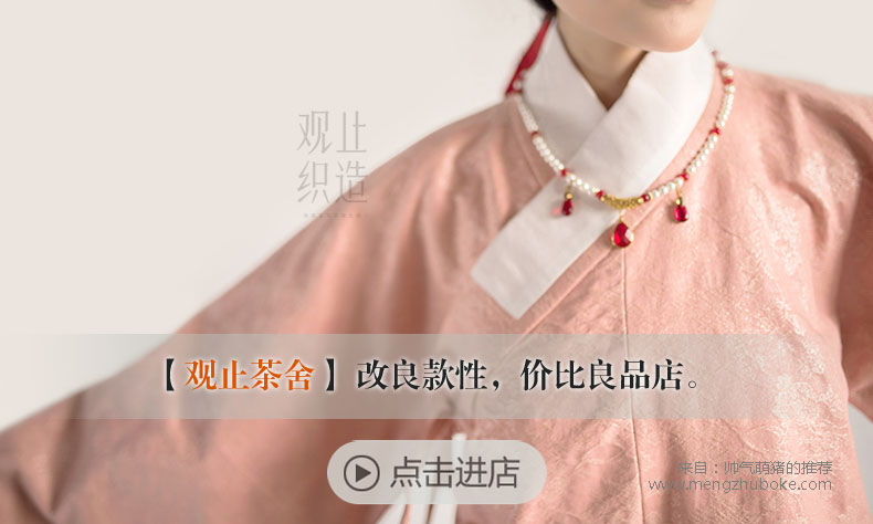 观止茶舍:也是一家款式相对较少的店,设计风格也相对要较少一些,但有的都是性价比良品!最近上了一波不错的新品,大多是袄裙、马面、和,长衫这种,价位在三百左右,如果适合真的值得入。