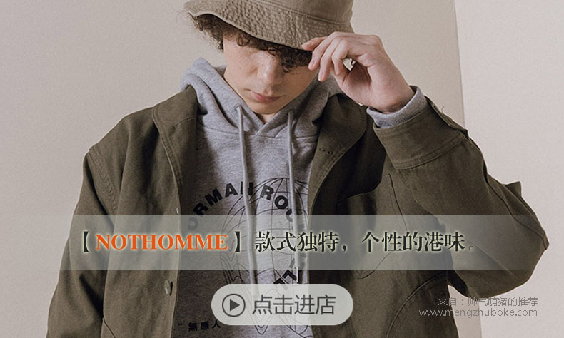 NOTHOMME:也是一直在关注的一家,款式很独特,大都以个性港味的设计出彩,大多数都极有设计感,而且他家的衣服还平价又好看,适合二十岁到三十多的男人。这个潮店衣服质量也不错,可以入手几款放在衣橱里,绝不会后悔。
