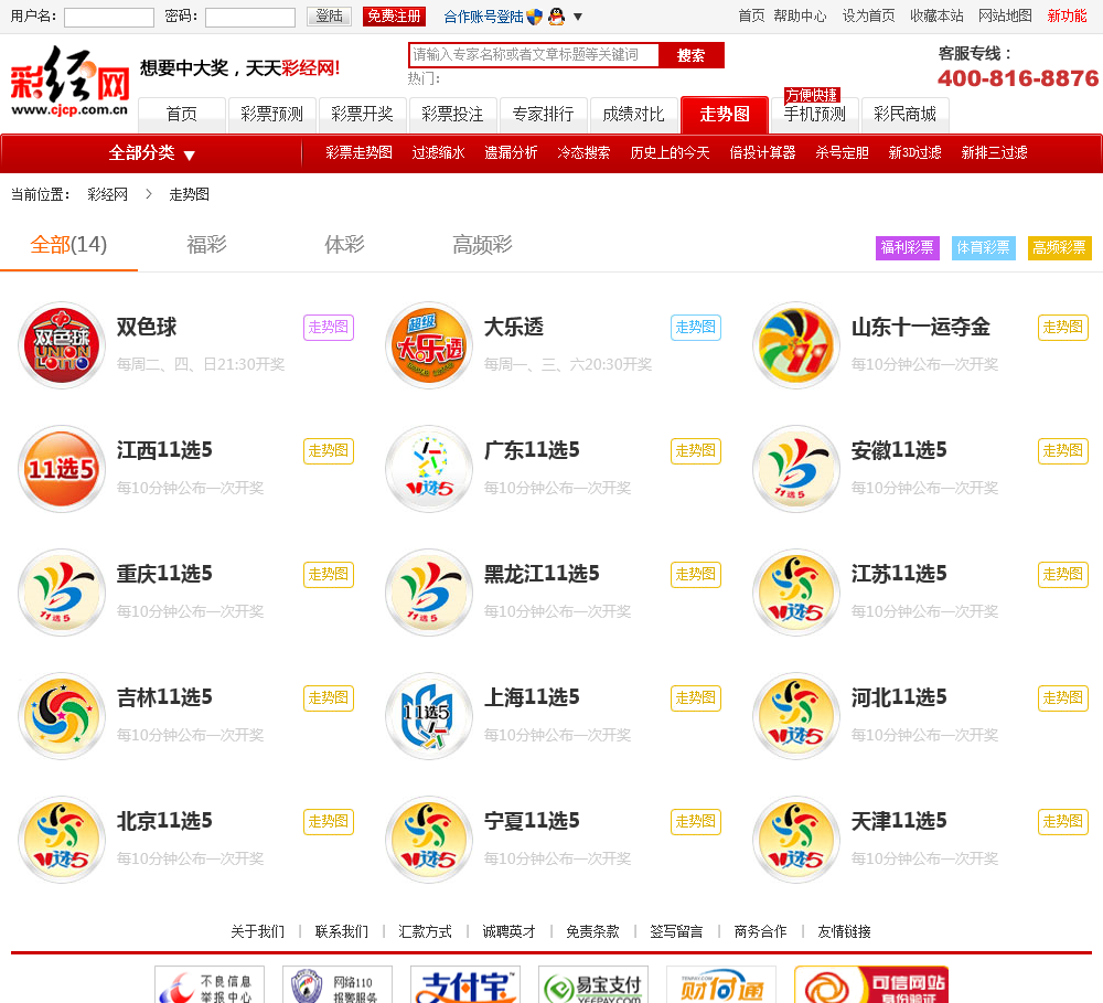 【全国彩票数据图表】全国彩票走势图_福利彩票走势图_体育彩票走势图-彩经网
