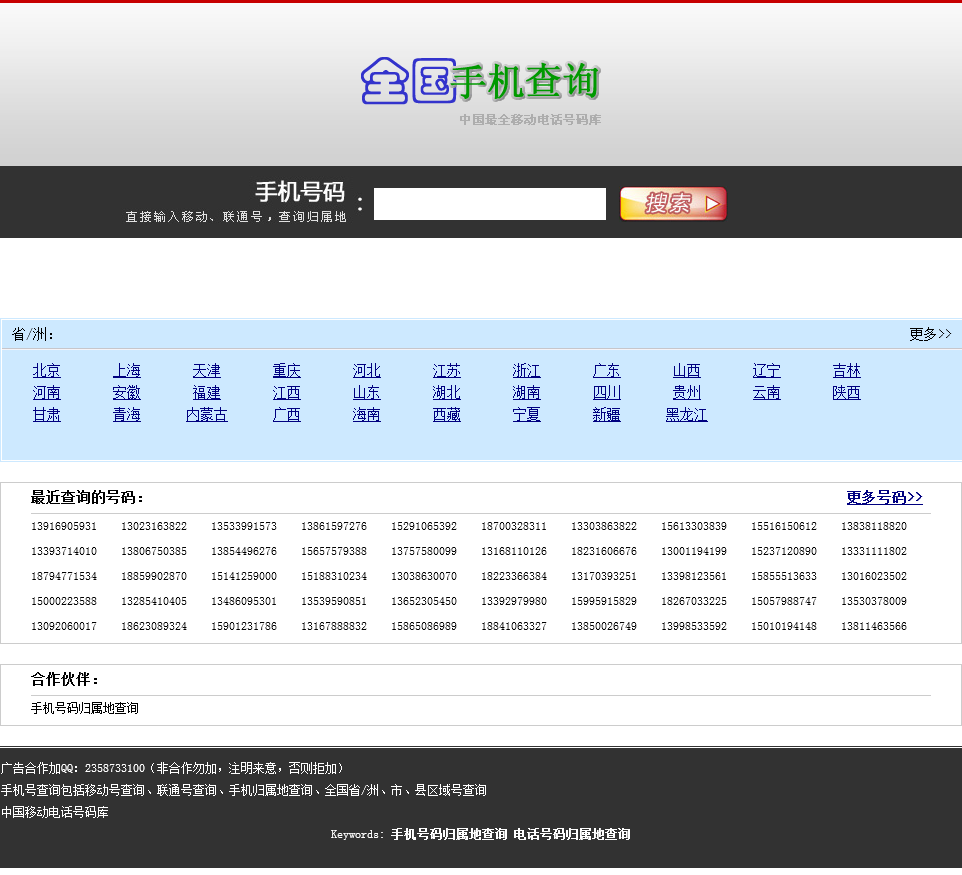 - 网站名称:手机号码归属地查询