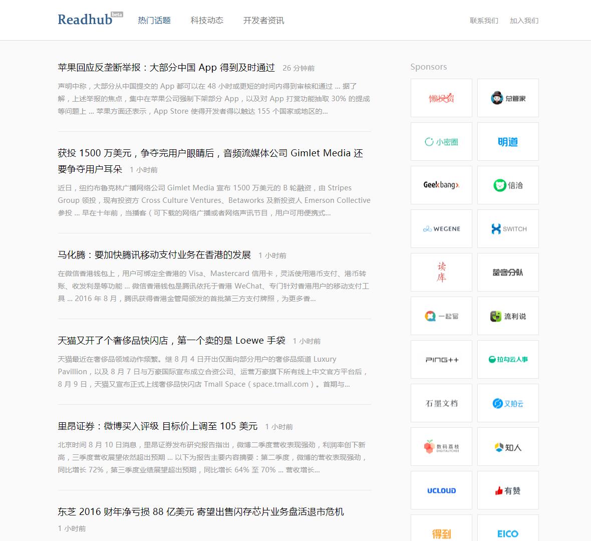 - 网站地址:readhub.me