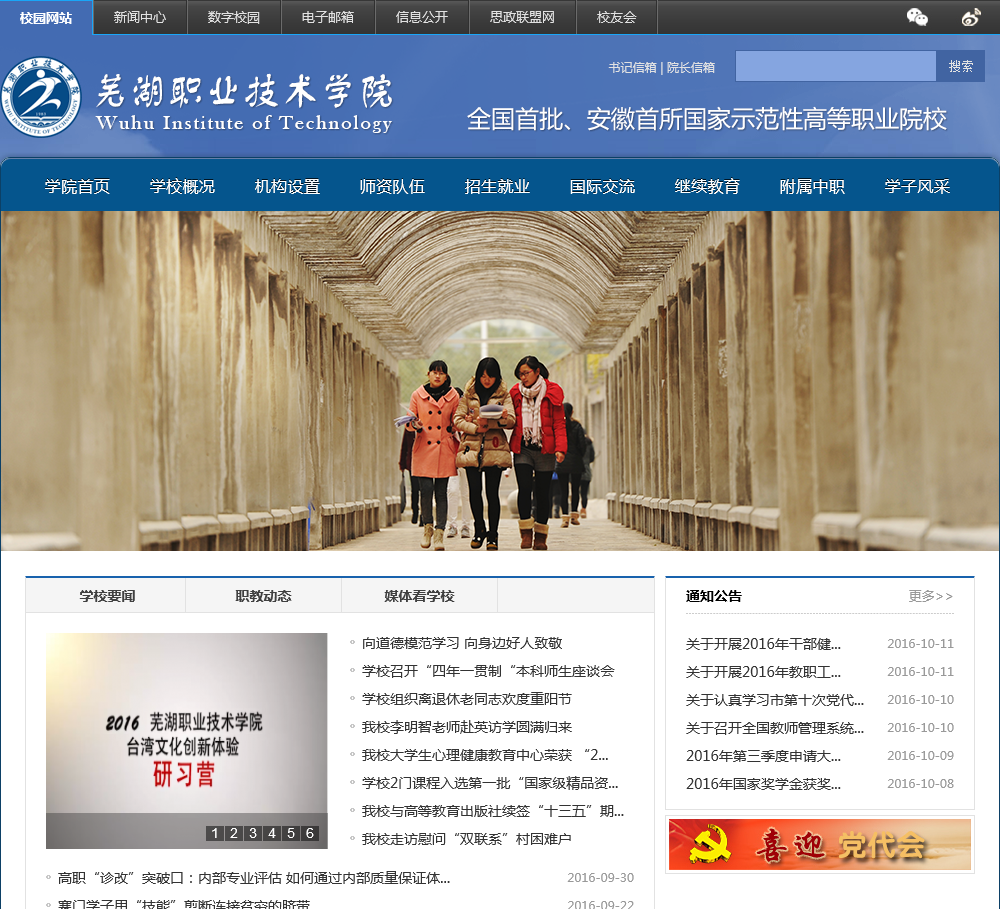 芜湖职业技术学院于2020-08-11被0702投稿网收录,网站相关信息来自互联网或网友分享!由于(芜湖职业技术学院)网站内容动态属性,时刻在变动,本站无法保证(芜湖职业技术学院)网站内容真实可靠!请大家查阅时,谨慎选择、自辩真伪,感谢您的理解与支持。如果您在访问(芜湖职业技术学院)时发现:网址失效、或网站存在非法等相关内容,请及时联系我们,我们会第一时间处理。