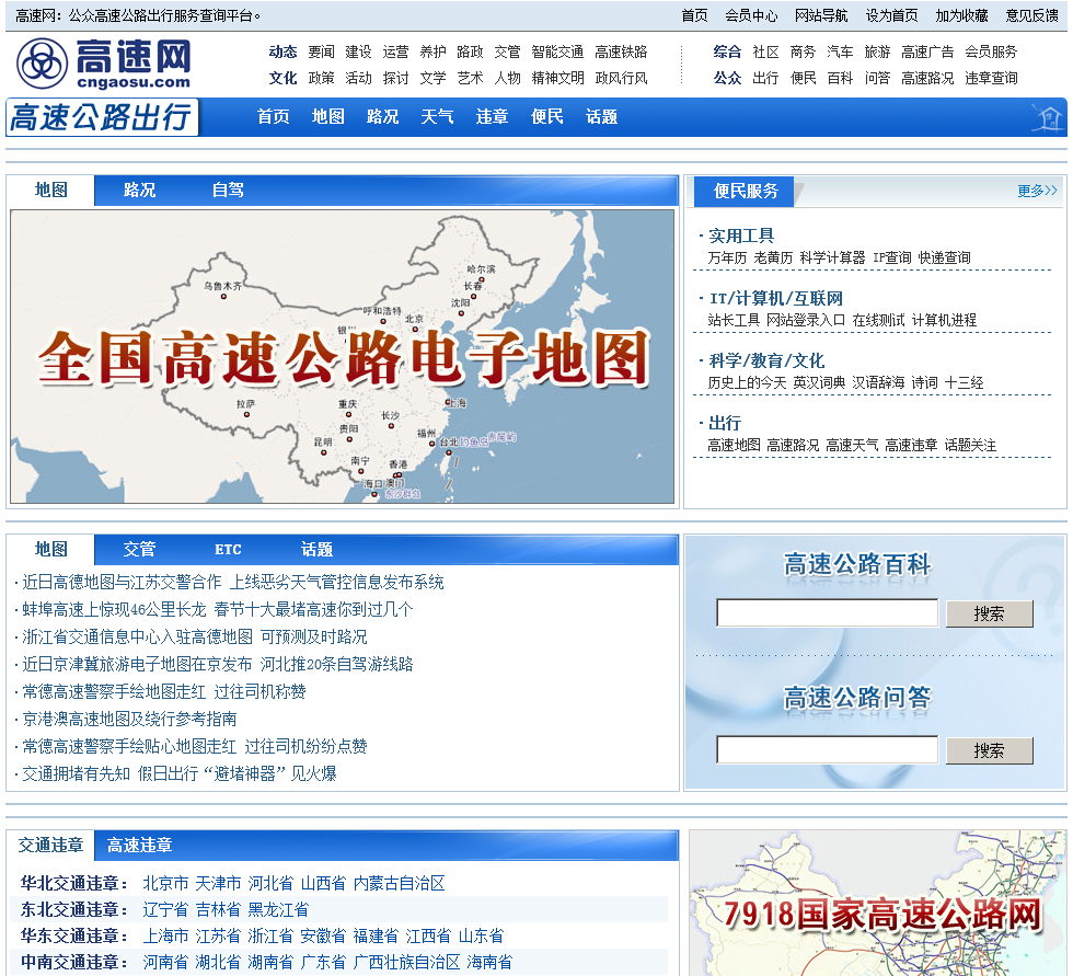 中国高速网,公众高速公路出行服务查询:为社会公众提供方便快捷的高速公路出行查询服务的高速公路网站。