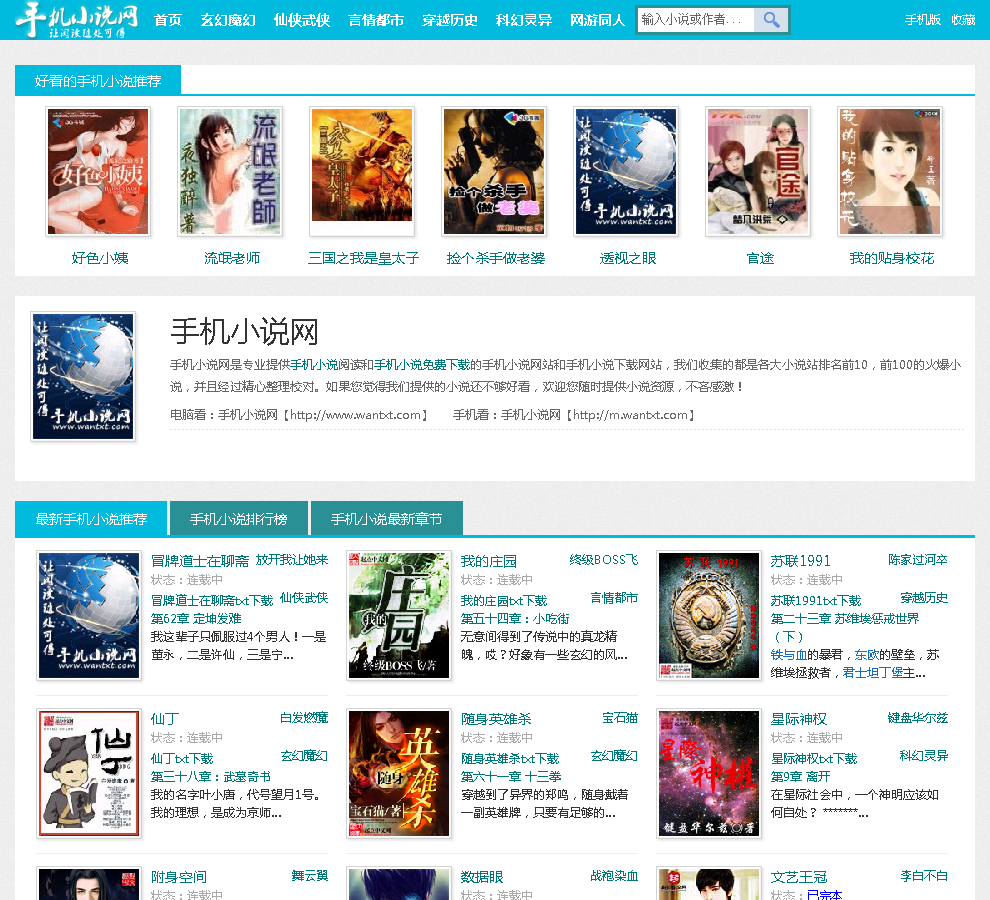 - 网站名称:手机小说网