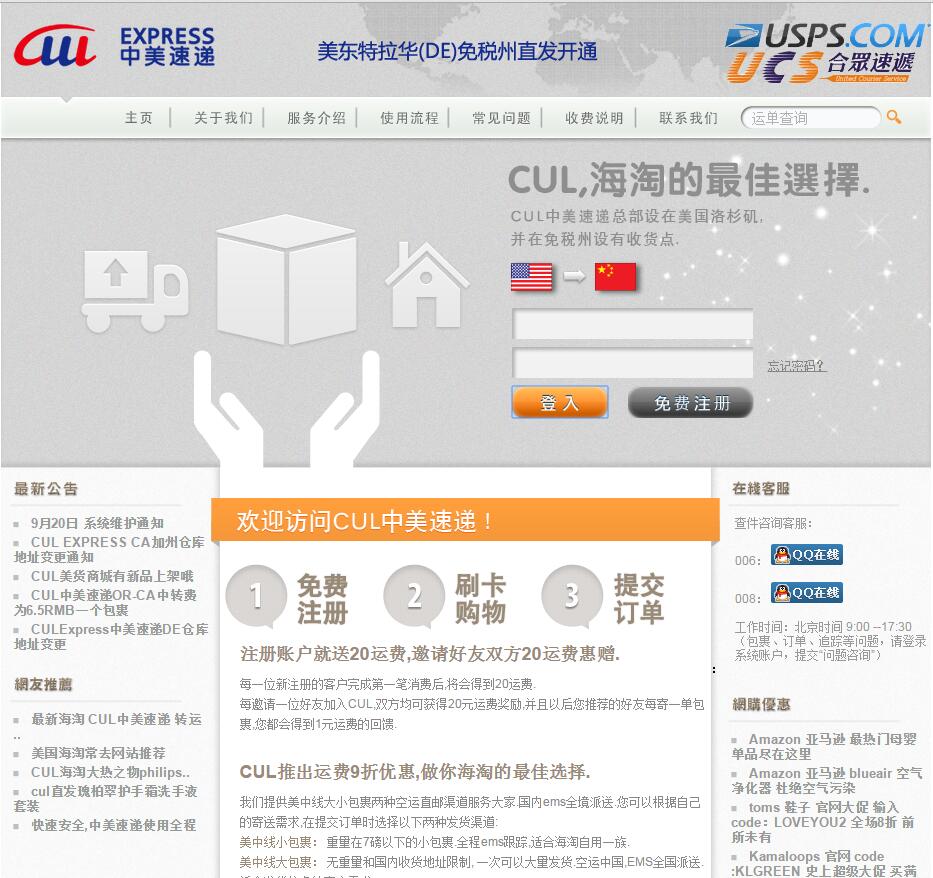 CUL中美速递于2020-08-11被0702投稿网收录,网站相关信息来自互联网或网友分享!由于(CUL中美速递)网站内容动态属性,时刻在变动,本站无法保证(CUL中美速递)网站内容真实可靠!请大家查阅时,谨慎选择、自辩真伪,感谢您的理解与支持。如果您在访问(CUL中美速递)时发现:网址失效、或网站存在非法等相关内容,请及时联系我们,我们会第一时间处理。