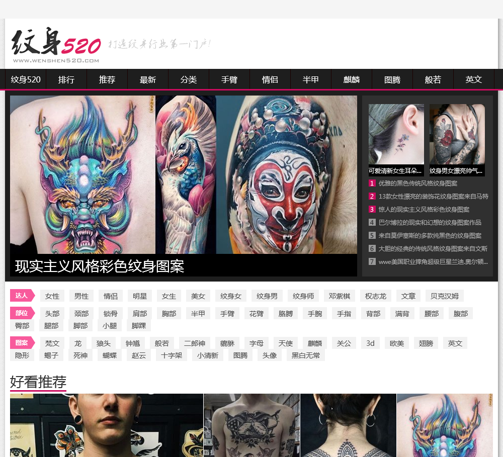 纹身520于2020-08-12被0702投稿网收录,网站相关信息来自互联网或网友分享!由于( 纹身520)网站内容动态属性,时刻在变动,本站无法保证( 纹身520)网站内容真实可靠!请大家查阅时,谨慎选择、自辩真伪,感谢您的理解与支持。如果您在访问( 纹身520)时发现:网址失效、或网站存在非法等相关内容,请及时联系我们,我们会第一时间处理。