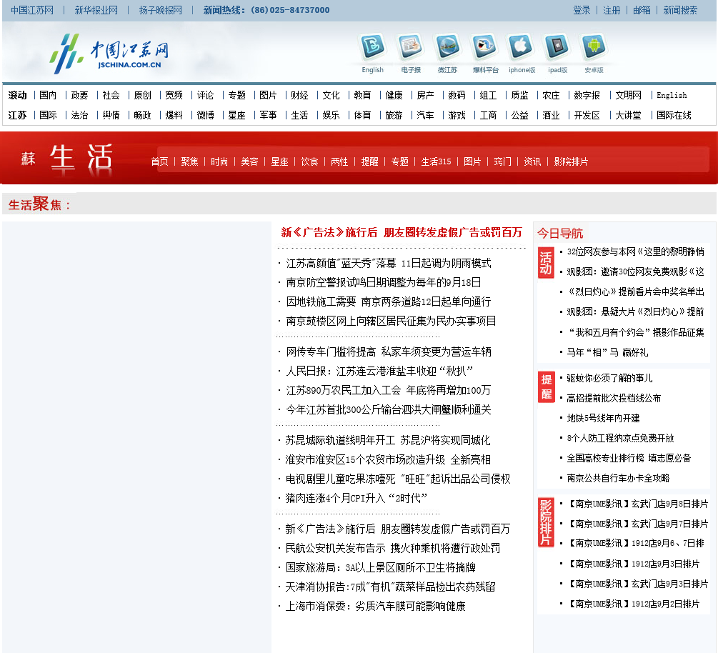 当前位置:主页 > 网站目录 > 中国江苏网生活频道life.jschina.com.cn