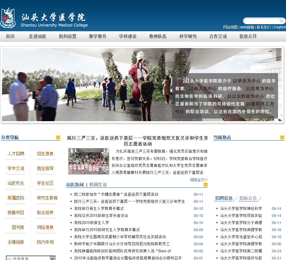 汕头大学医学院于2020-08-12被0702投稿网收录,网站相关信息来自互联网或网友分享!由于(汕头大学医学院)网站内容动态属性,时刻在变动,本站无法保证(汕头大学医学院)网站内容真实可靠!请大家查阅时,谨慎选择、自辩真伪,感谢您的理解与支持。如果您在访问(汕头大学医学院)时发现:网址失效、或网站存在非法等相关内容,请及时联系我们,我们会第一时间处理。