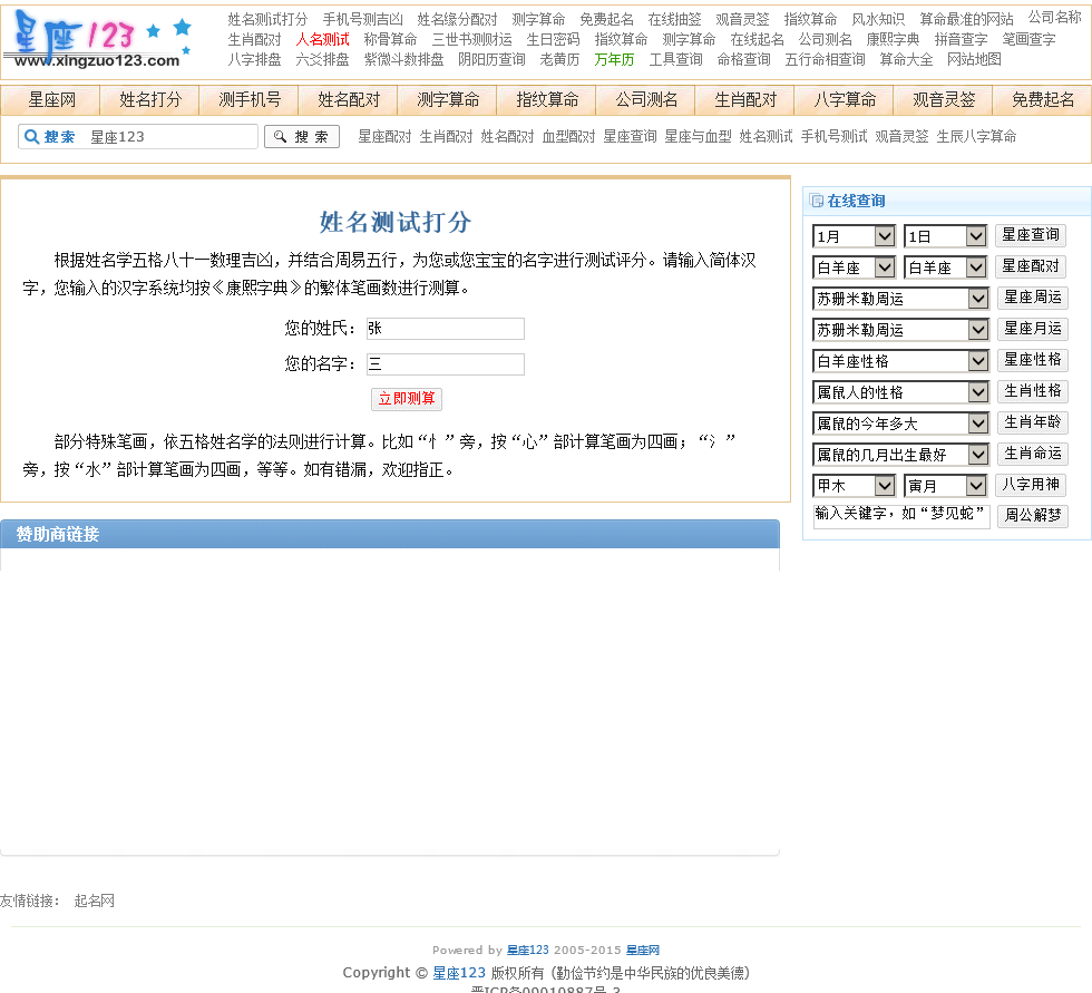 - 网站名称:星座网姓名测试